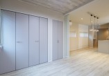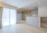 1号棟は19.5帖のLDKにパーテイションで仕切られた4.5帖洋室のある間取り。フルーオープンにすると24帖のLDKに早変わり!洋室部分はセカンドリビングや趣味スペースなどライフスタイルに合わせて使えます。