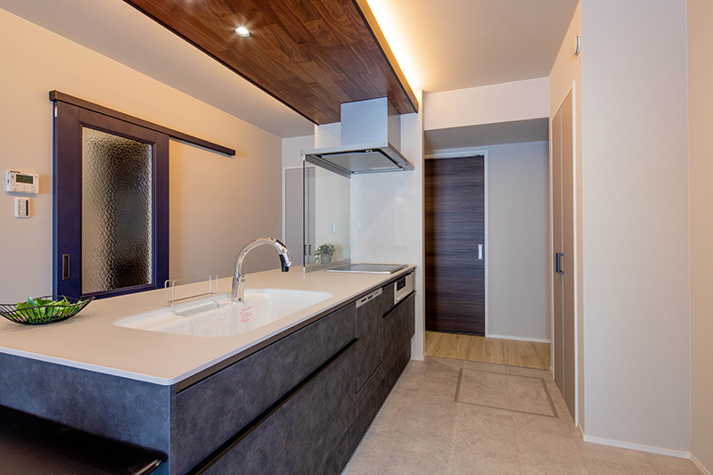 2号棟は20帖のLDKと視界が広がるペニンシュラキッチンのある住まい。和室は続き間になっており、家事室代わりに使うと便利!主寝室は4帖のウォークインCLを配置。