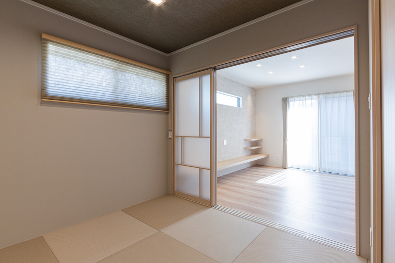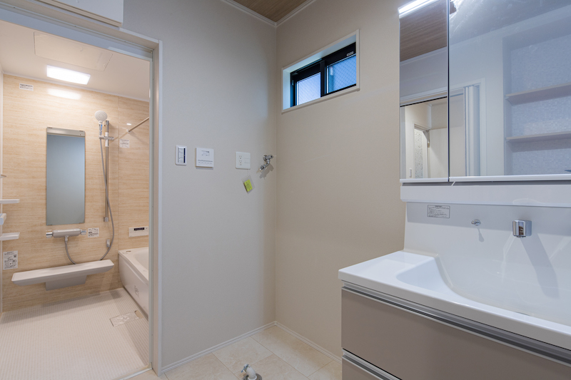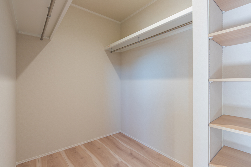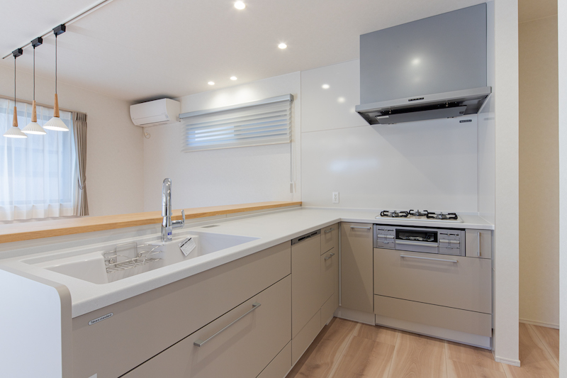 6号棟は玄関からキッチンへ抜けられるウォークスルー収納のある住まい。買い物帰りに収納しながらキッチンへ行ける便利で人気のある動線。キッチンは作業スペースが広く取れるL型を採用しご家族で楽しく料理が楽しめます。