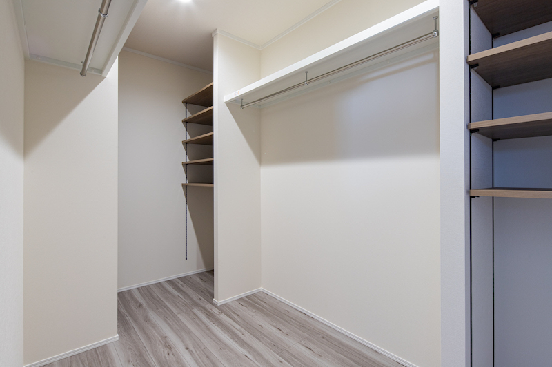 2号棟はLDKに家族で使えるワークスペースのある住まい。こもり感がありながらもプライベート空間を保てる場所。4帖ウォークインCLや3帖納戸など充実した収納スペースも必見!