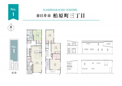1号棟は全居室6帖以上アウトドア派にピッタリ!大きな土間収納が印象的な4LDK。キッチン横にはカウンターがありPCスペースなどに使えます。1階に独立した和室があり、ライフスタイルに合わせた使い方を。