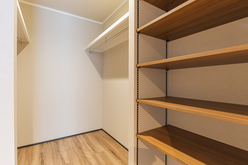 6号棟はオープン階段とLDKに納戸のある4LDKの住まい。LDKは家族が集まり物が多くなるスペースなので納戸が大活躍!スッキリとした空間で過ごすにはマストな装備。