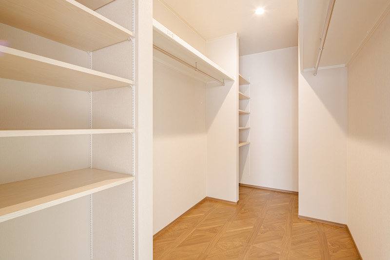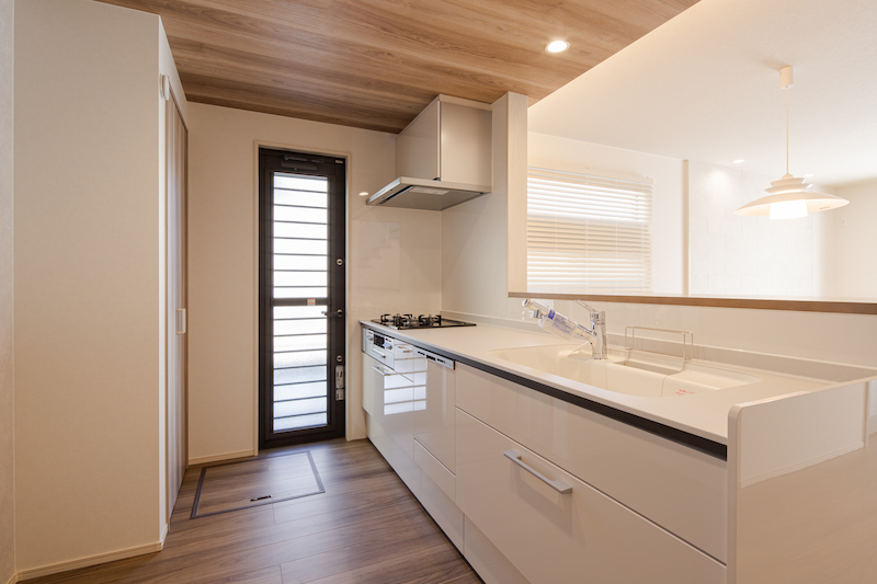 2号棟はリビングにプラスαワークスペースのある住まい。キッチン横のワークスペースは吹抜けにより自然光と優雅さをもたらします。2階主寝室には4帖のウォークインCLを配置。