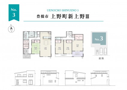 3号棟は全居室6以上以上で充実した収納が自慢の住まい。1階には土間収納やウォークインCL、リネン収納にパントリーなど用途に合わせた収納がいっぱい。物干しが楽なワイドバルコニーも装備。