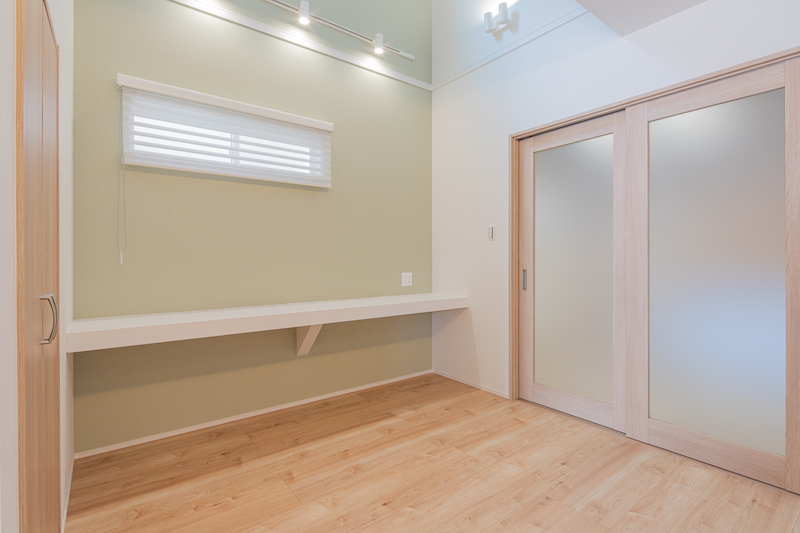 1号棟はキッチン前にワークスペースのある住まい。キッチンから目線が届き家族の気配を感じながら使えるスペース。2階洋室は全居室ウォークインクローゼットを装備!