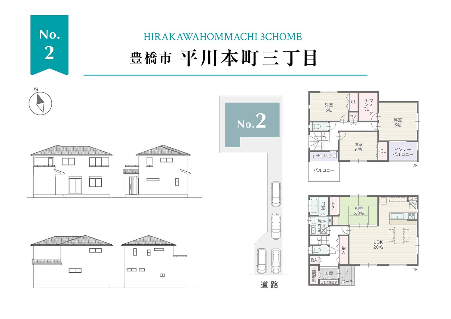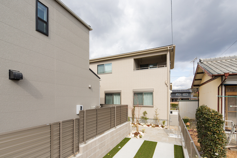 2号棟は全居室6帖以上で1階に和室のある4LDKの住まい。LDKは20帖ありL型配置なので柔らかな日差しが室内を照らします。2階のバルコニーは廊下から直接出入りできる時短仕様。