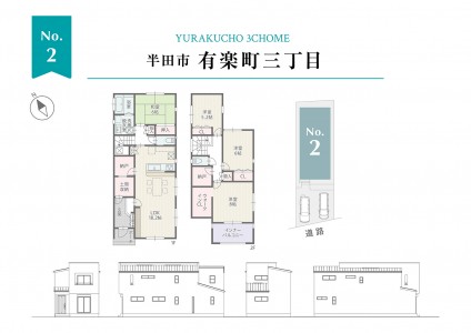 2号棟は収納スペースが豊富な4LDKの住まい。玄関からはウォークスルー収納でキッチンまで行ける動線が便利!2階にも納戸を設け収納力UP!1階独立和室は居室にも家事室にも使える万能ルーム