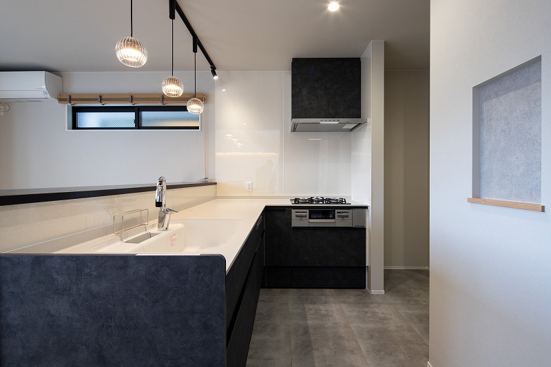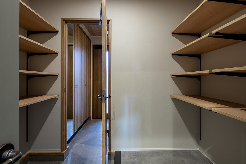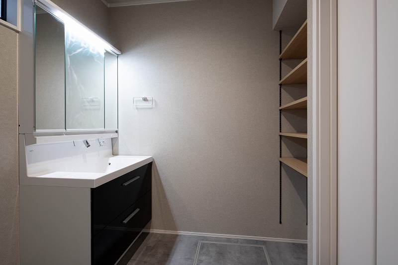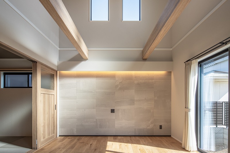 3号棟は玄関からキッチンへ抜けられるウォークスルー収納のある住まい。買い物帰りに収納しながらキッチンへ行ける便利で人気のある動線。リビング吹抜けから差し込む柔らかな明かりがリビングを包み込みます。