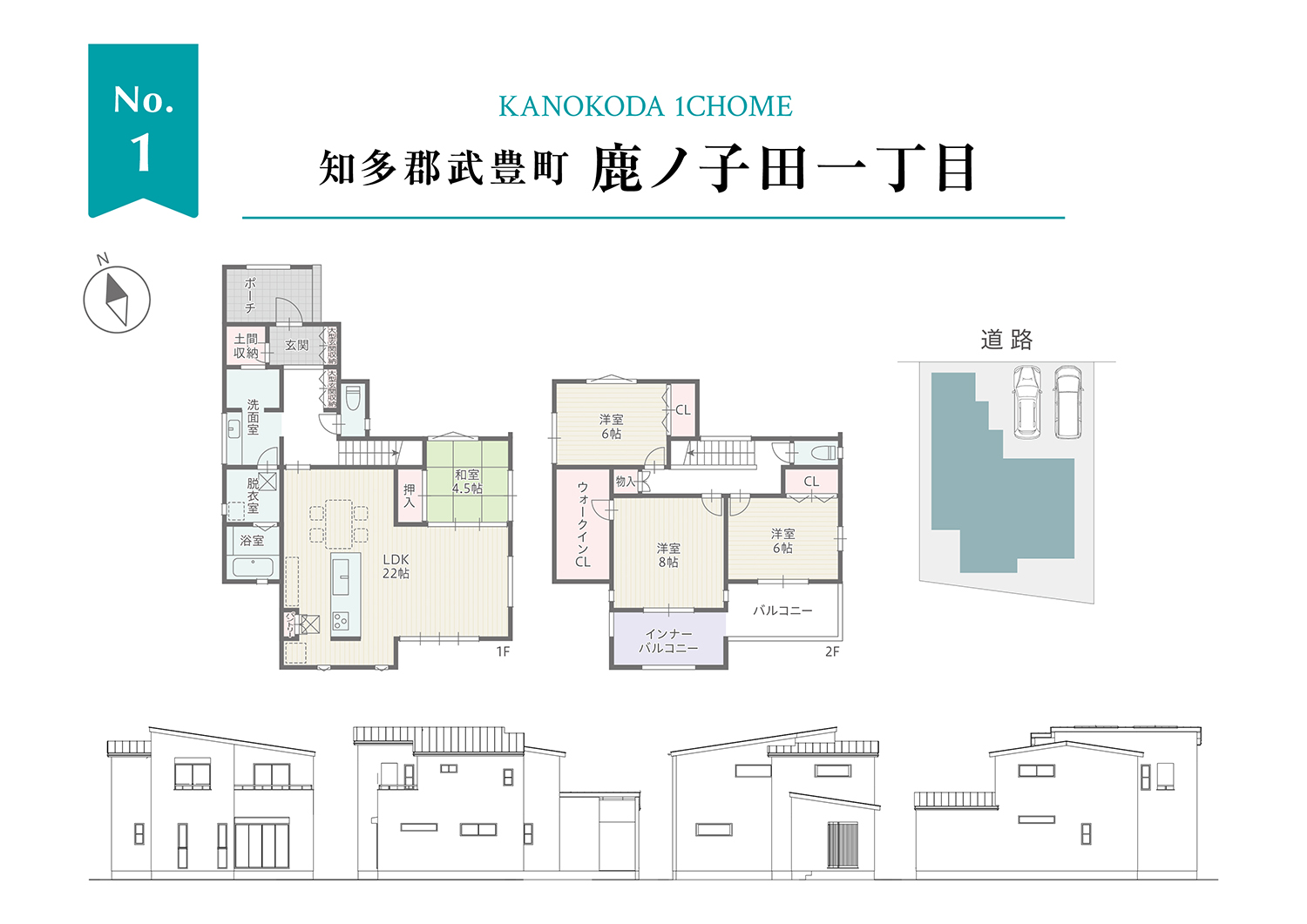 1号棟は誰でもいつでも使える洗面室のある4LDKの住まい。LDKはゆとりの22帖!プラス続き間和室で解放感のある住まい。主寝室には4帖のウォークインCLを備え収納もしっかり。