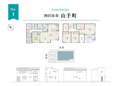 1号棟はゆとりある暮らしやすい間取りが特徴!土間収納や3帖洗面脱衣室、パントリーや3帖納戸、主寝室には書斎カウンターも備え付け。