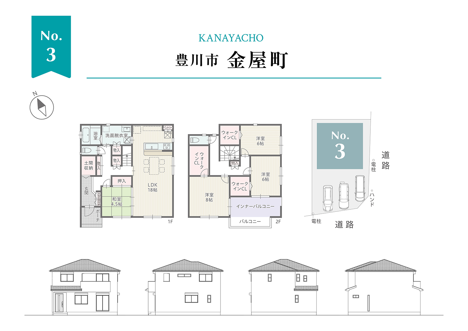 3号棟は角地で日当たり良好!水廻りを集約した家事楽な動線が人気!2階洋室は家族の成長に合わせた全室ウォークインCL付きなので収納面も安心。ワイドなインナーバルコニーは使いやすく便利。