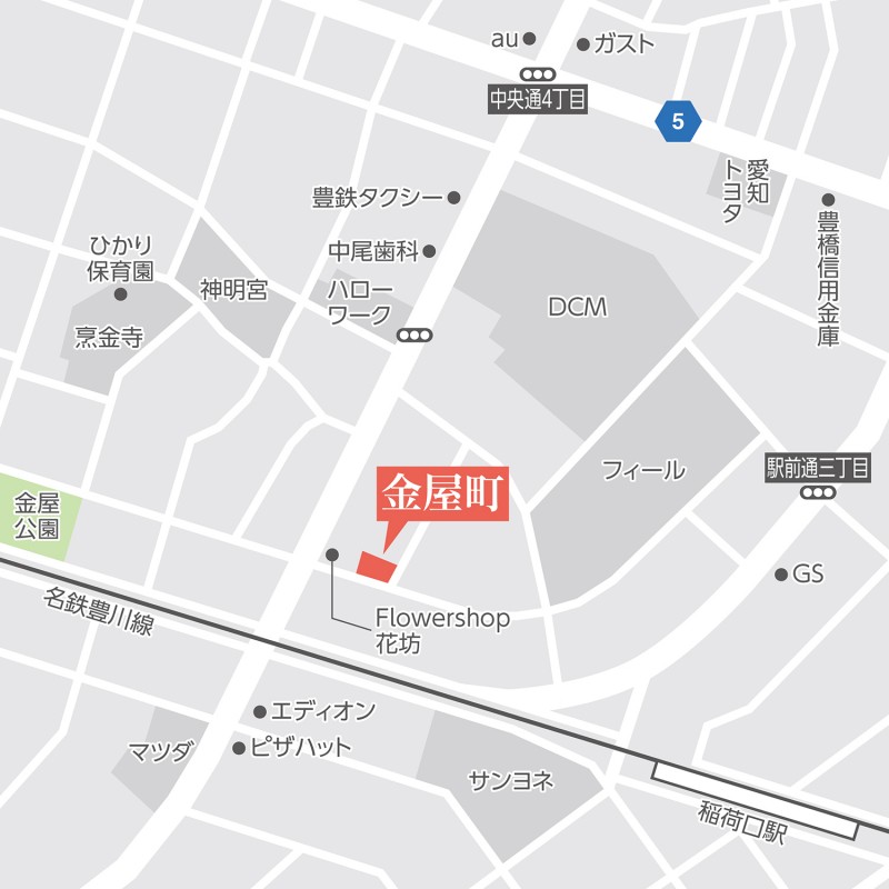 名鉄豊川線「稲荷口駅」徒歩約5分 JR飯田線「豊川駅」徒歩約19分 ナビ入力 マップコード 43 511 886 |