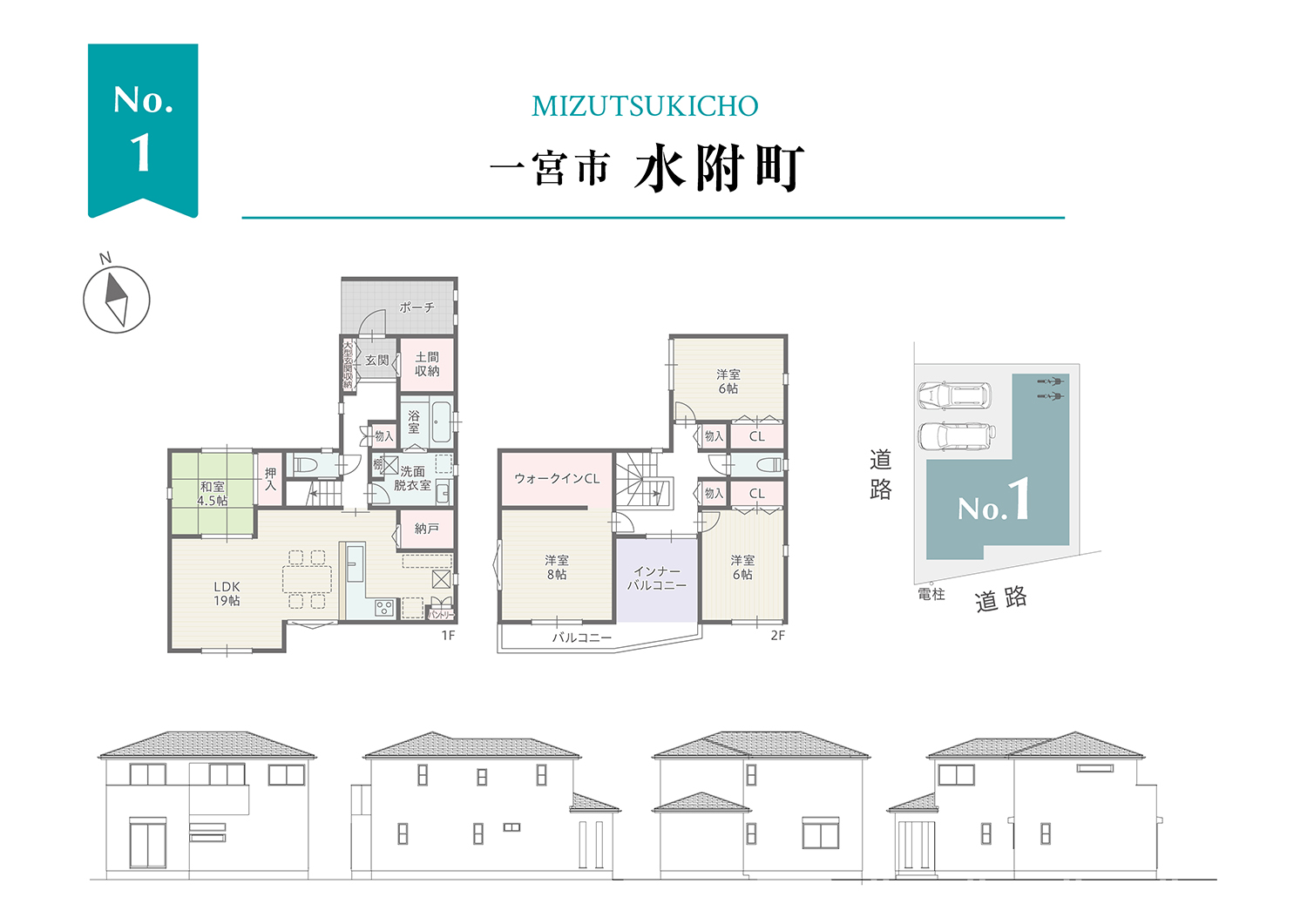 1号棟は南面いっぱいに使った明るいLDKがポイント!玄関土間収納やLDKに納戸を設け収納も豊富で居室をスッキリ保てる住まい。2階には直接バルコニーへ出られる家事動線で時短家事に貢献。