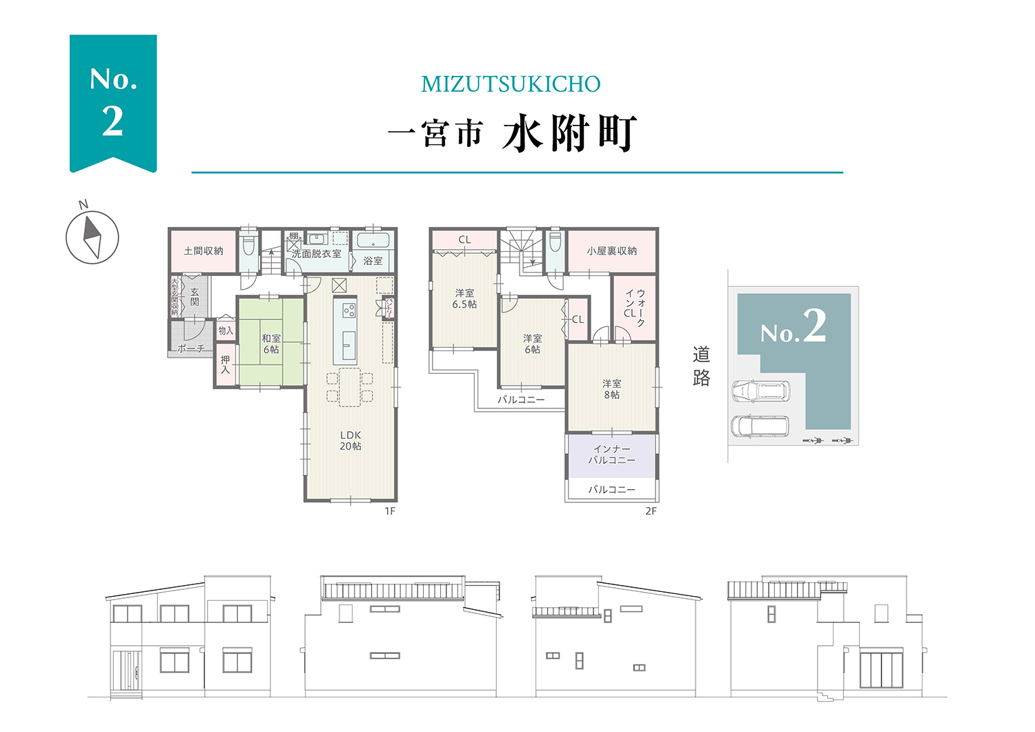 2号棟は全居室6帖以上でLDKは20帖。ペニンシュラキッチンの採用で視界が広がりさらにゆとりある空間を演出。2階には4帖の小屋裏収納を備え収納力もUP。
