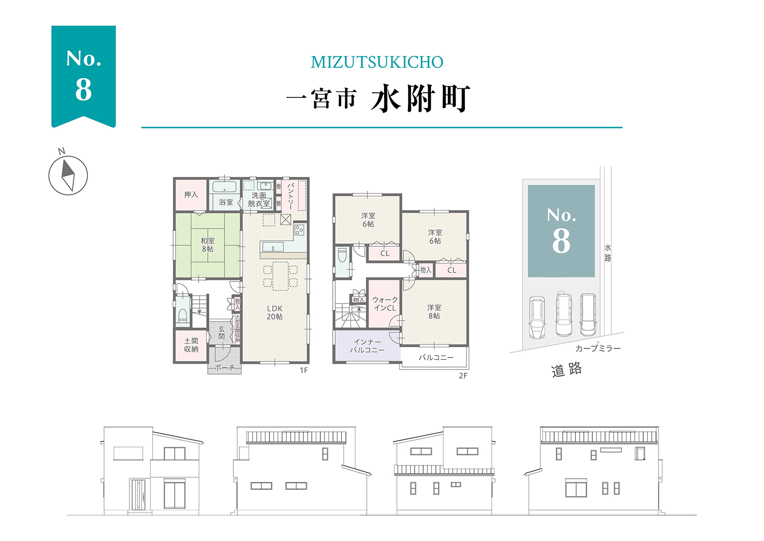 8号棟は全居室6帖以上で1階に20帖LDKと8帖続き間和室が印象的な住まい。1階は最大28帖もの大空間に!1階和室は家事室、子供の遊び場、将来的に寝室にしたりと暮らしの変化にも対応可。