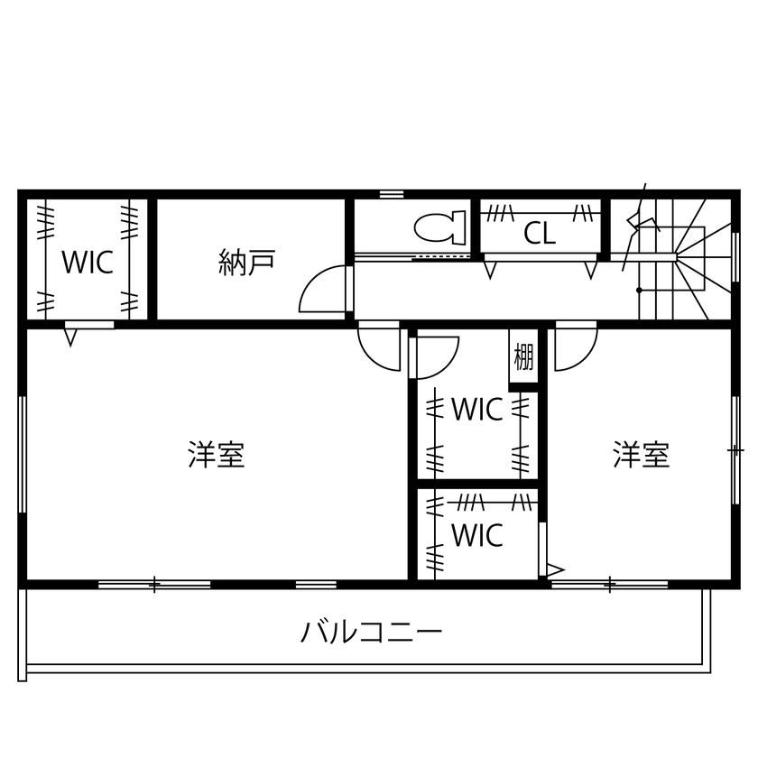 2階にはウォークインクローゼットを3ヶ所配置。奥までしっかり収納できることで、衣替えの手間がなくなり、着たい服がすぐに見つかる